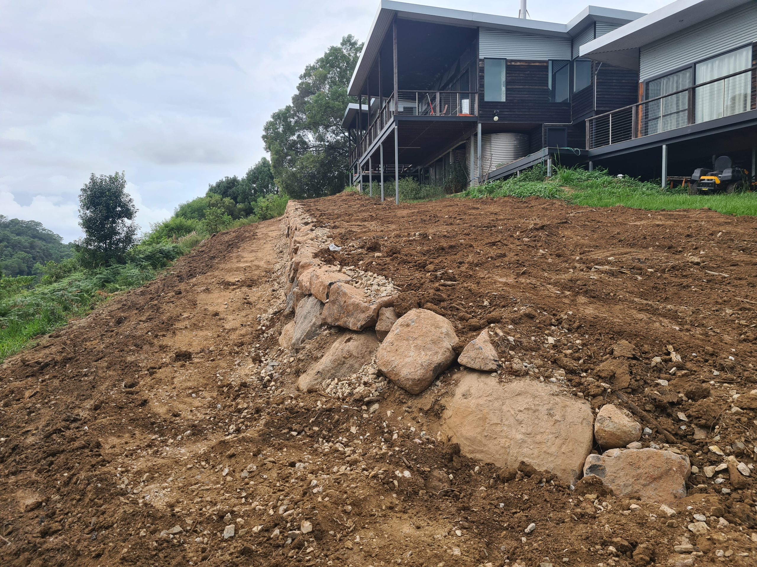 Rockwall creations is a business focusing on structural earth and stone work. Mainly for private, residential and rural properties. If you are looking for high grade bushrocks and reliable and neat construction contractor then I could be the correct choice for your upcoming project. I can also look at existing problems on your property, like lack of inadequate drainage, rockwall repairs and rebuilds or landslip and erosion repairs.